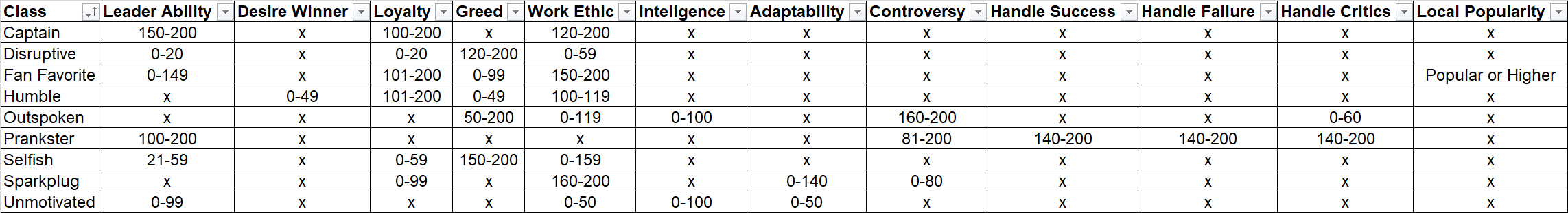 그러나 프랭크스터 클래스에 나타나지는 않습니다. 상상도 못한 리더에 등장하네요.. 리더의 조건은 정확히 모르지만, 당연히 리더십과 관계가 있을거고, 이걸 100으로 낮추면 리더에서는 사라집니다. 여전히 선수 에디터창에서는 험블로 표기되고요. DfW를 50으로 높이면,