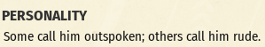 퍼스널리티 설명 또한 바뀝니다. 험블-리더 상태에서의 설명이 '이야기를 계속한다'인데, 설명 내용 자체는 프랭크스터에 대한 설명 같습니다. 프랭크스터의 조건도 갖추고 있기 때문에, 설명이 이렇게 나오는 것 같다는 추측입니다. 실제로 해당클래스로의 적용이 나타나는지는 잘 모르겠습니다. 리더/험블과는 다르게 찾아볼 방법이 없네요.