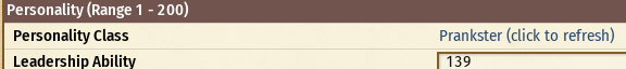아이들이 좋아한다는 퍼스널리티 설명을 볼 수 있네요. 여기서 승리갈망을 다시 49로 낮추고, 리더십을 140으로 늘린다면, 다시 리더항목으로 나타납니다.