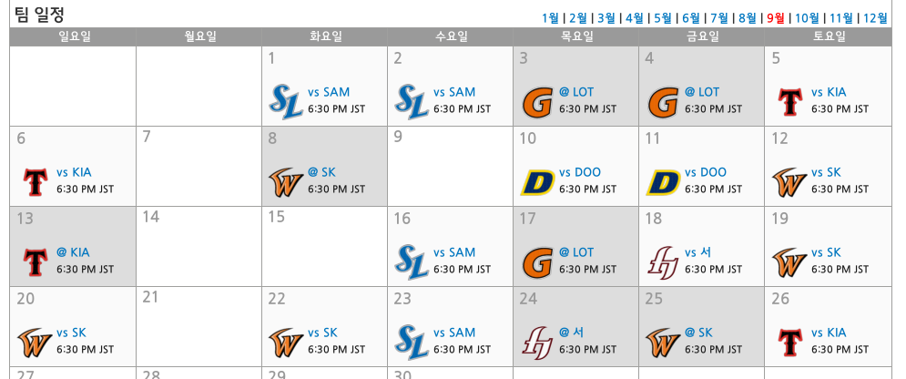 9월 잔여 경기 편성