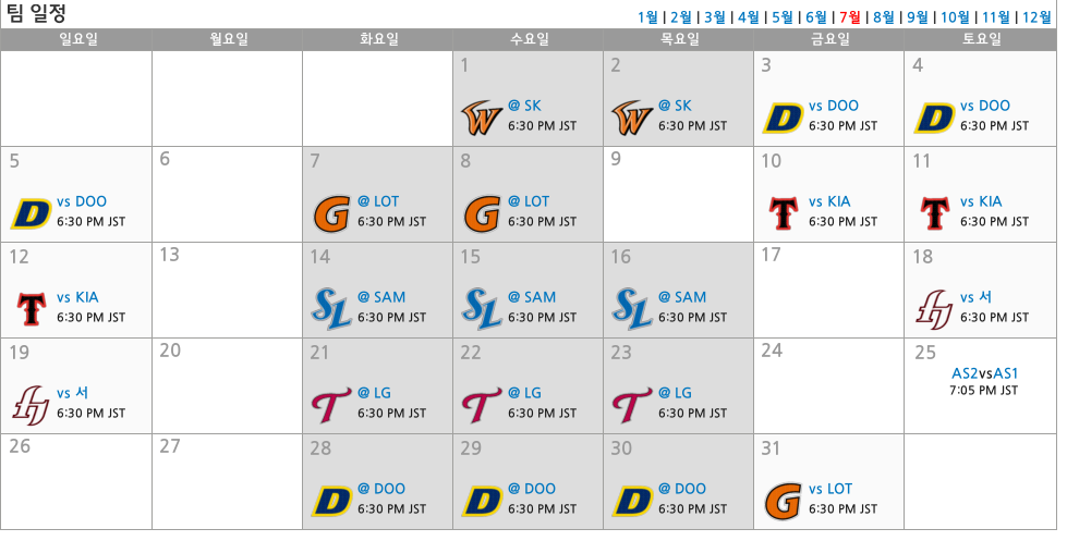 7월 우천 취소 1+1경기 (올스타전은 25일 토요일)