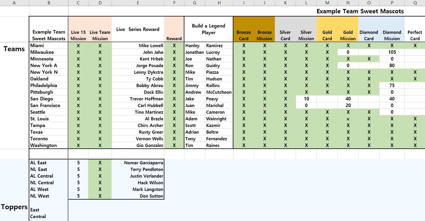 예시 시트는 이와같이 되어있습니다. 클리어한 미션을 한 시트에 요약하여 볼 수 있습니다.