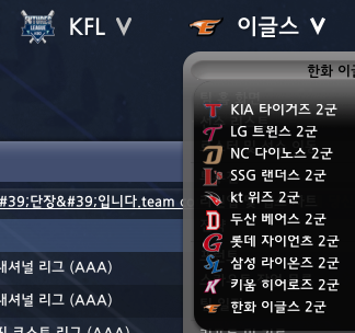 2군 팀명에서 지역명을 배제하였습니다. 리그 레벨 약자는 '퓨처스'입니다.