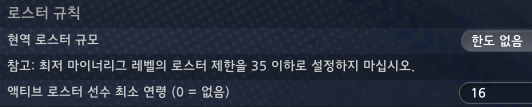 리그 발전은 승강, 확장과 연고이전, 팀명 변경 및 지타규칙을 OFF하였고, 나머지 옵션들은 변동가능합니다.