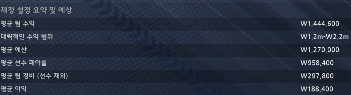 리그 재정 설정은 전작의 UFO KBO 퀵스타트의 설정을 차용했습니다.