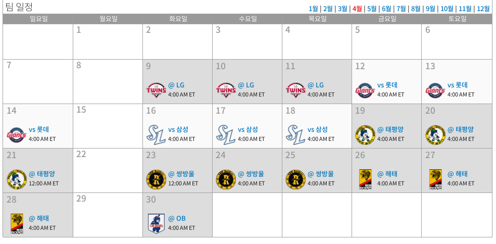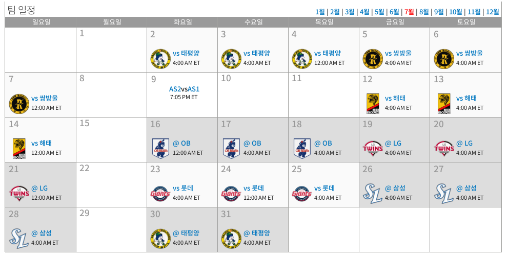 9월 초에 마무리되는 정규편성입니다. 우천 추후편성이 KBO식 별도 로직이 있는 게 아닌, 편성된 연전에 DH로 몰아서 하다보니, 시즌은 현실보다 일찍 끝납니다.