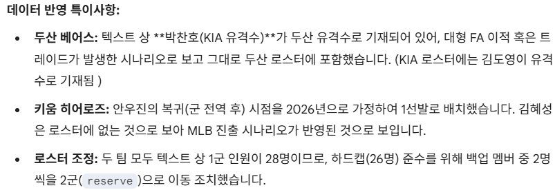 위의 내용을 기반으로 차차 업데이트할 생각이다. 만약 AI의 능력치 생성값이 적절하지 않다면, 7월에 업로드한 OOTP 로스터 파일을 기반으로 추가 작업을 할 예정이다.