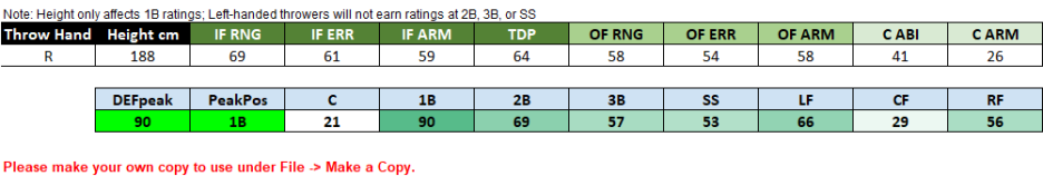 OOTP에서 포지션 평점을 계산할 때 활용하는 포지션 레이팅 계산기입니다.